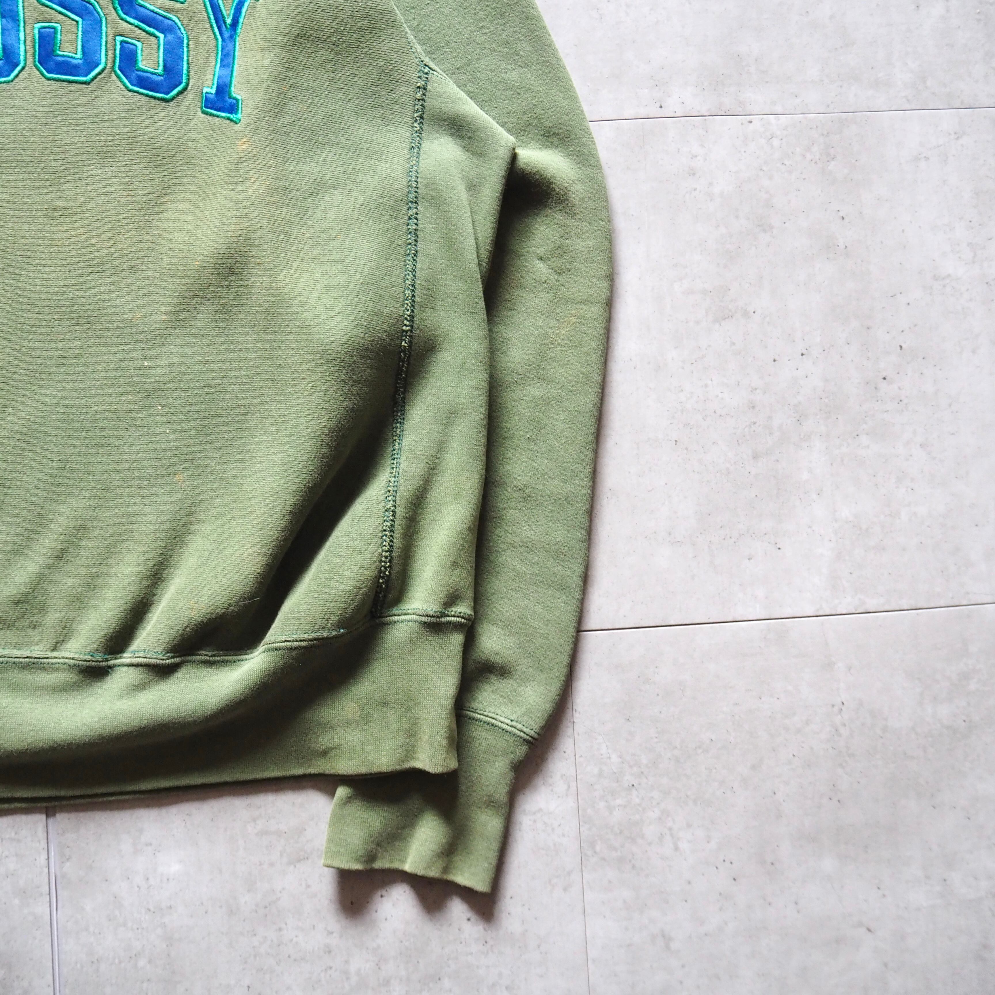 1990s "OLD STUSSY" Nylon Patch Logo Fade Sweat Reverse Weave