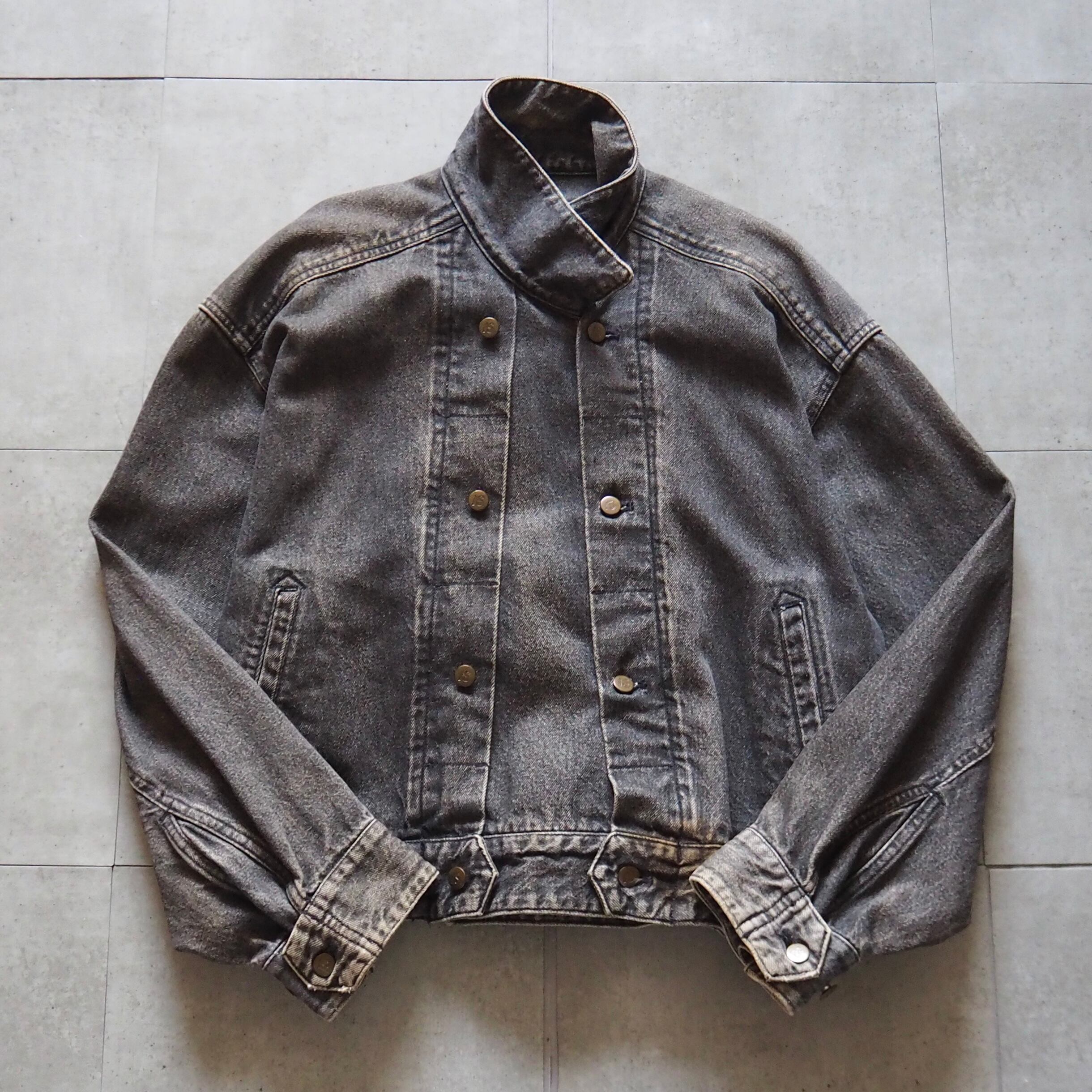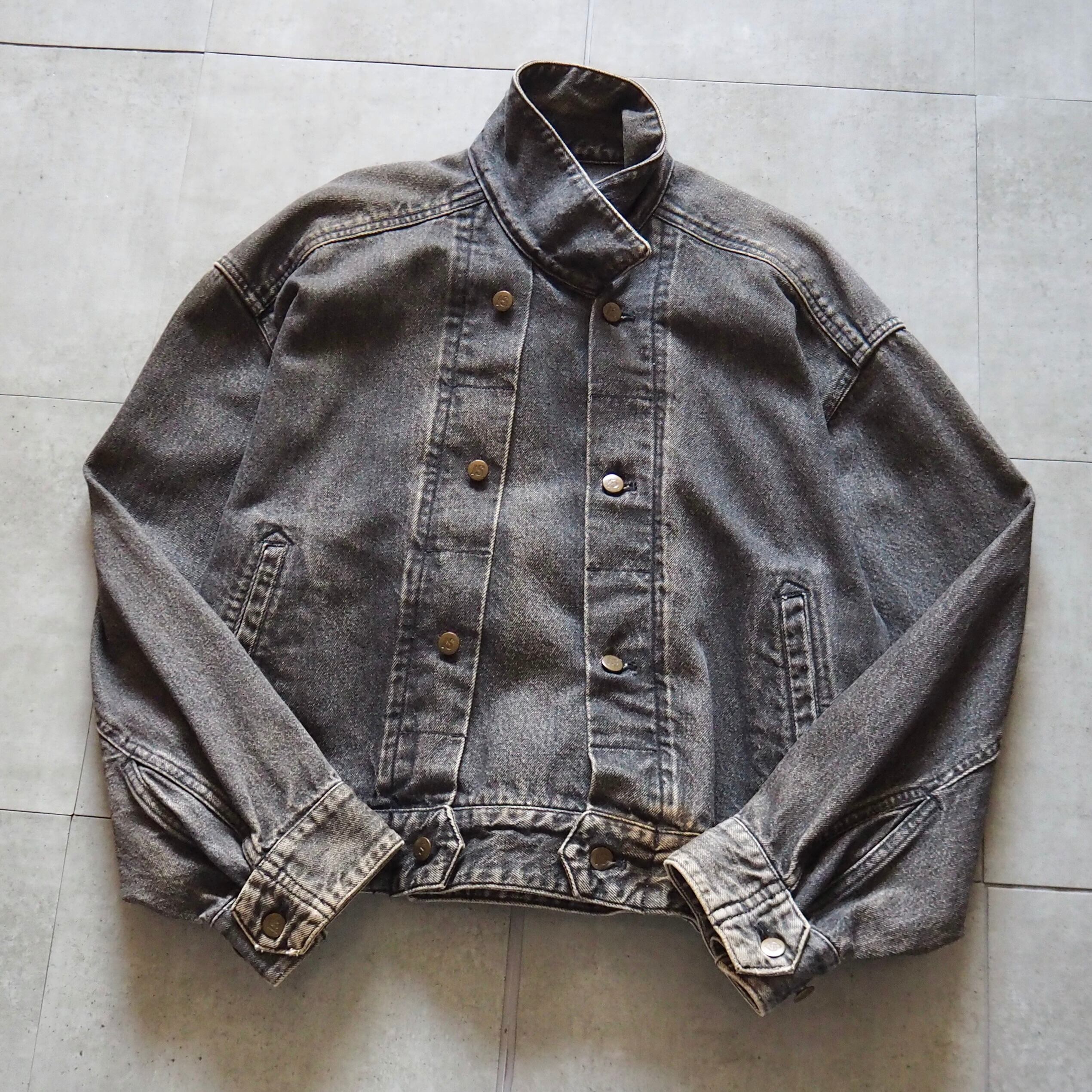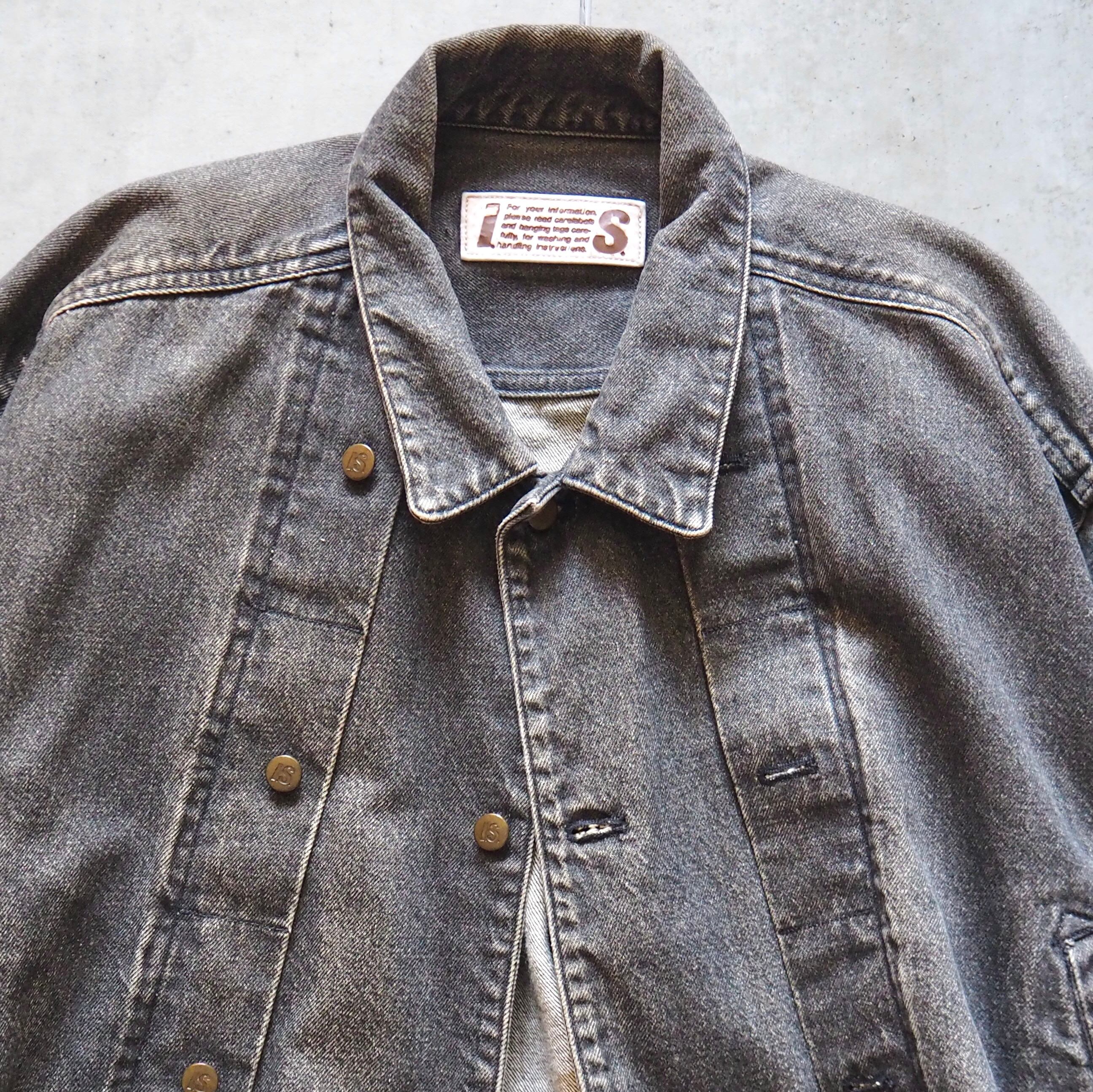 80-90s "I.S. ISSEY MIYAKE" Adjustable Button Black Denim Jacket