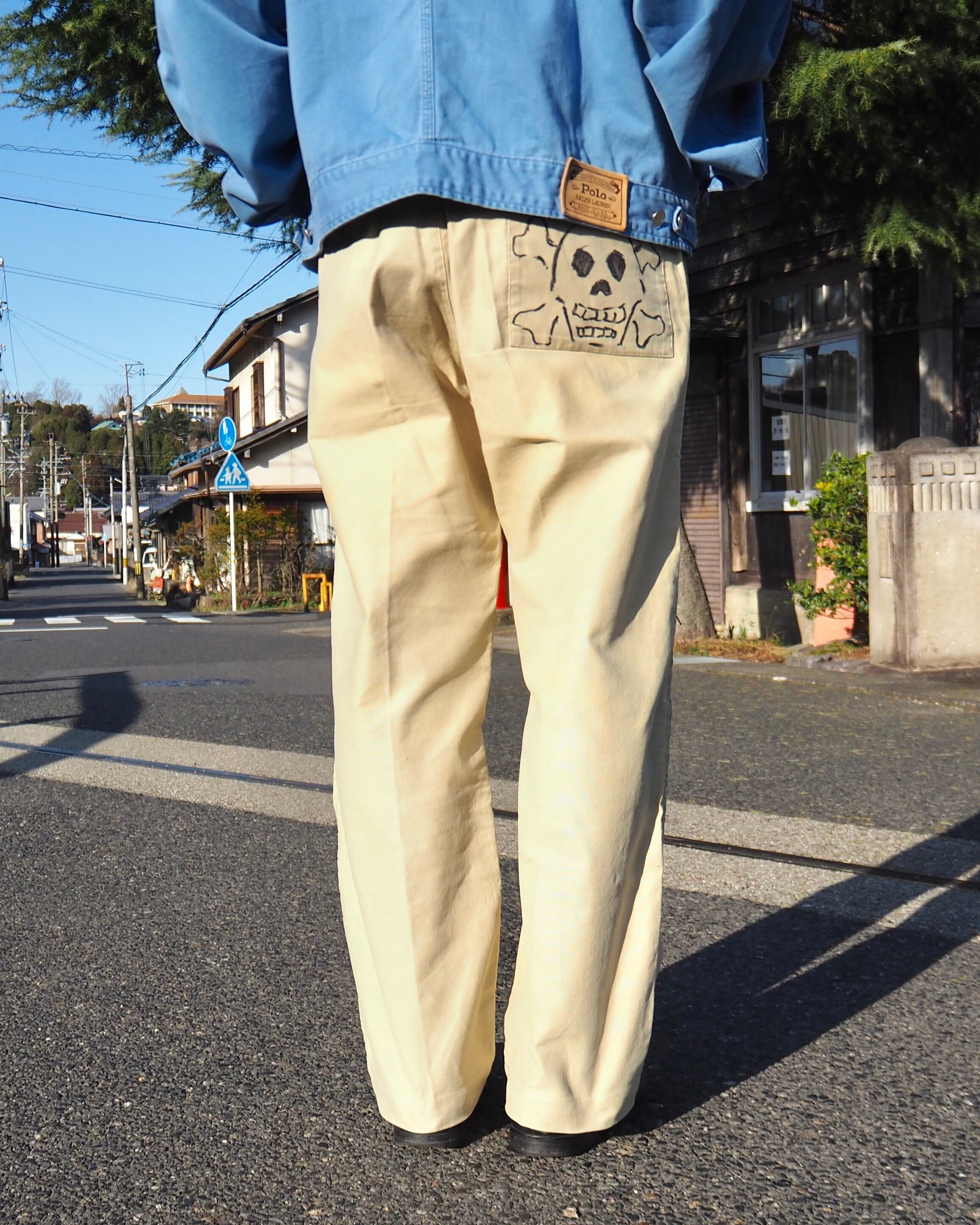 ハンドペイントが施されたメモリアルパンツ
