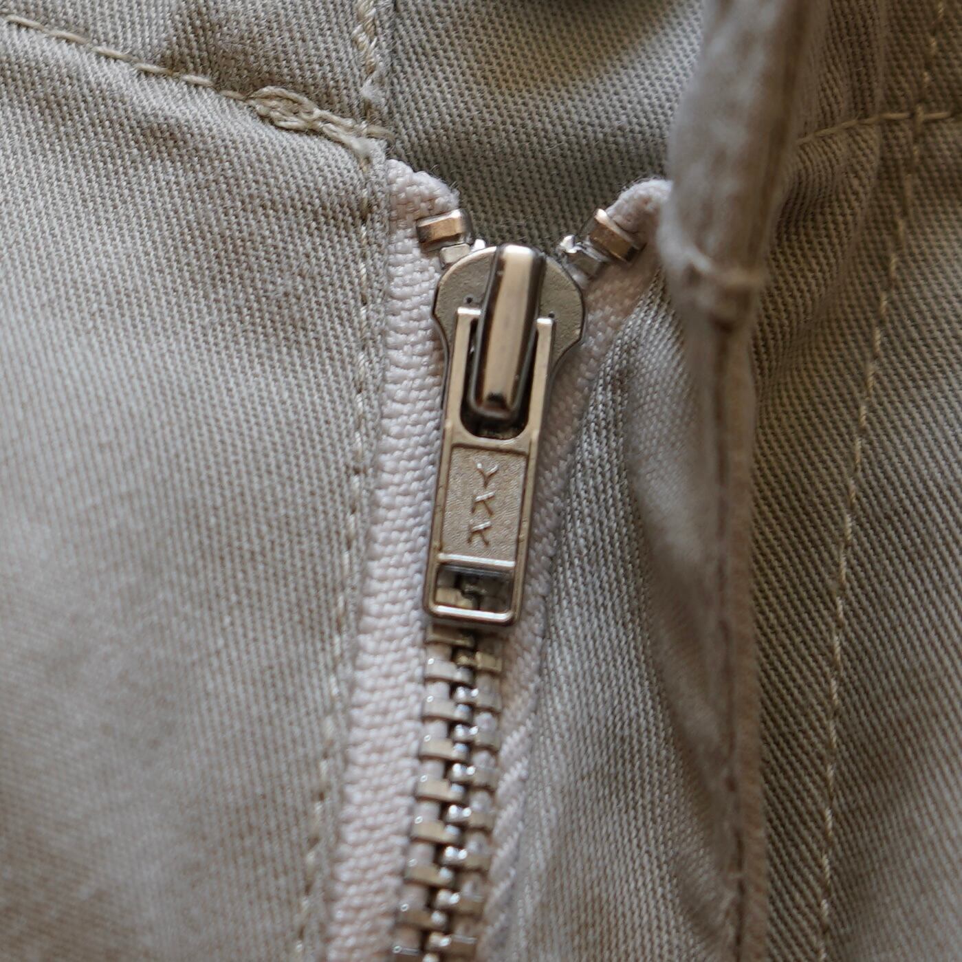 ボタン、ジップ両側から手を入れられるギミックポケット付き