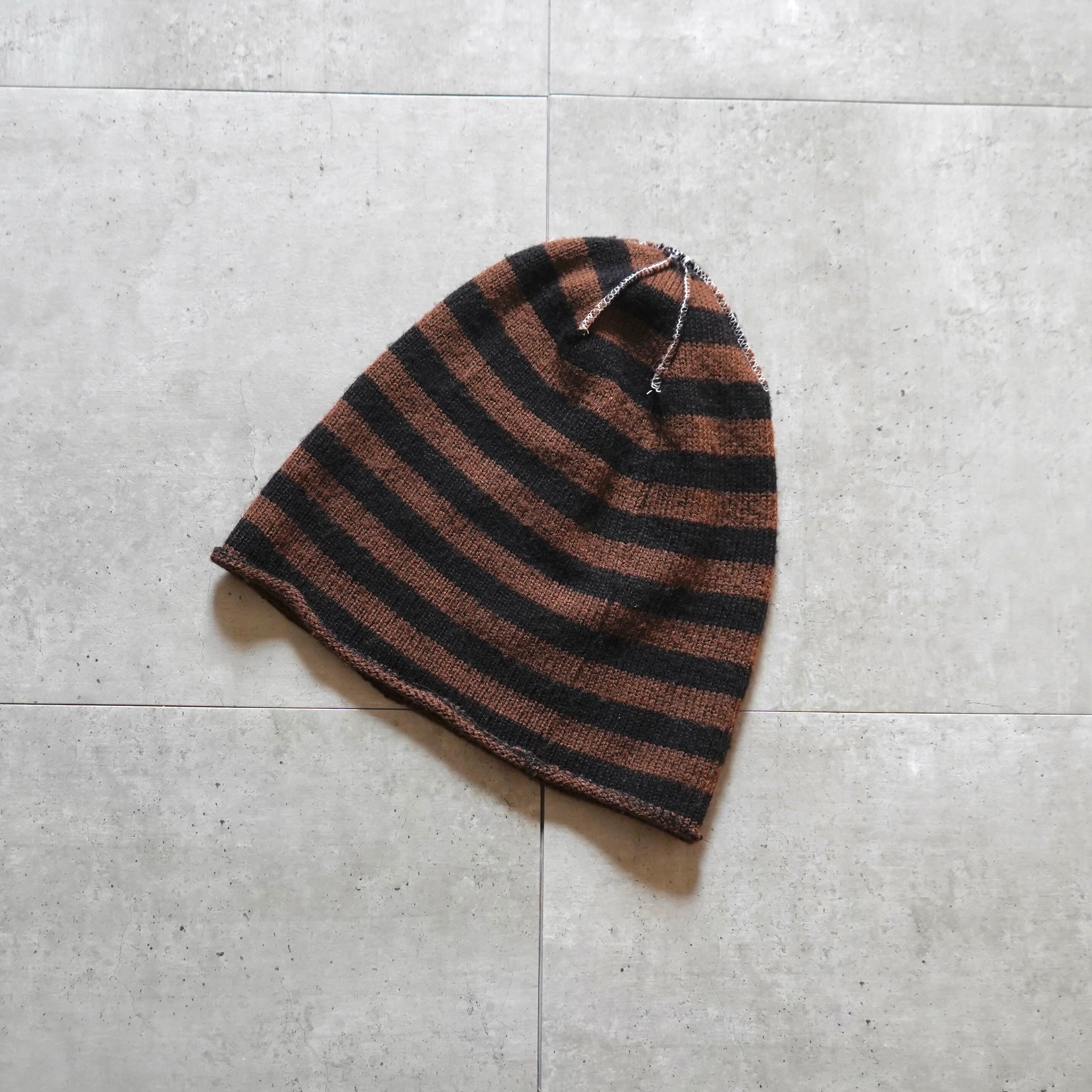 カットオフ仕様のストライプビーニーです。