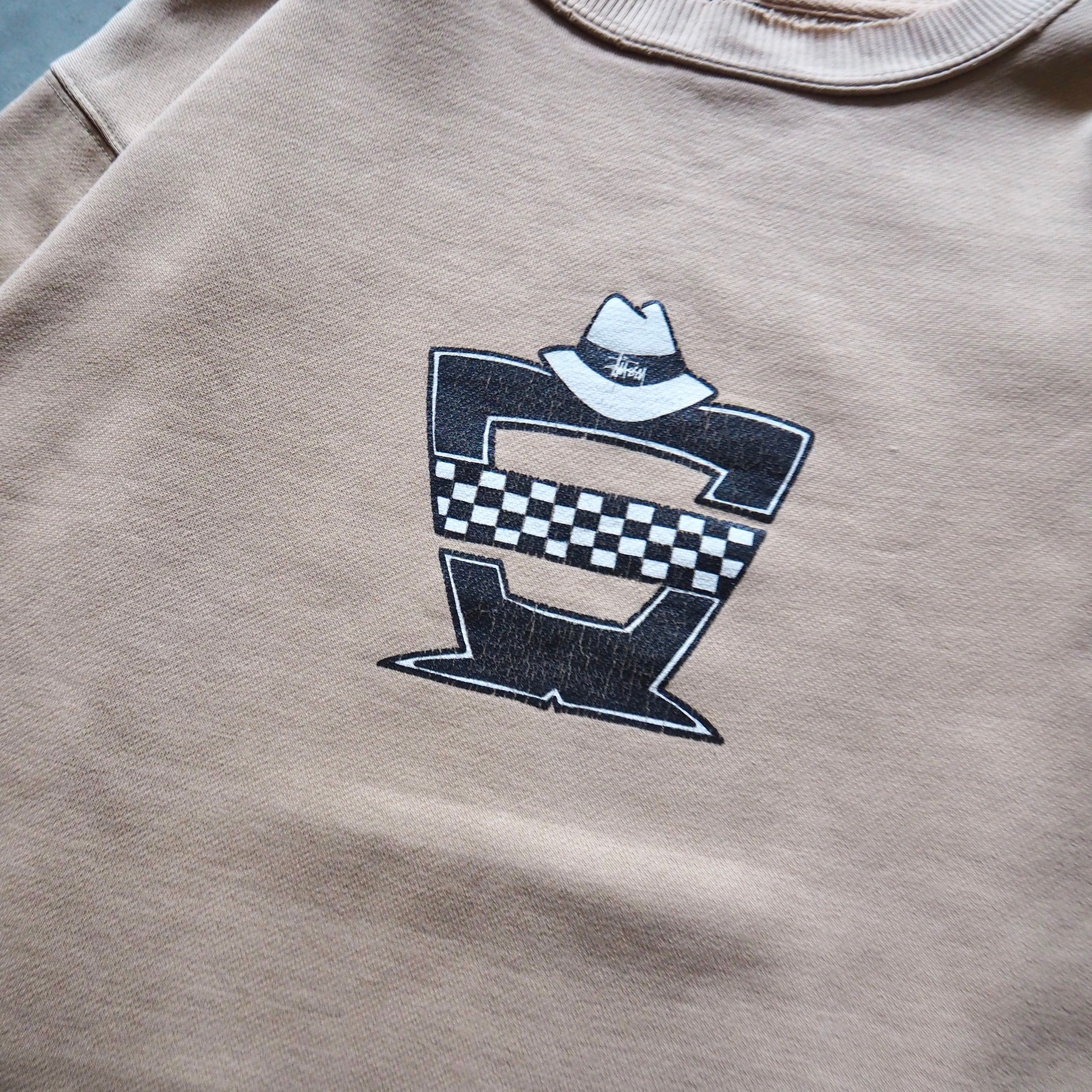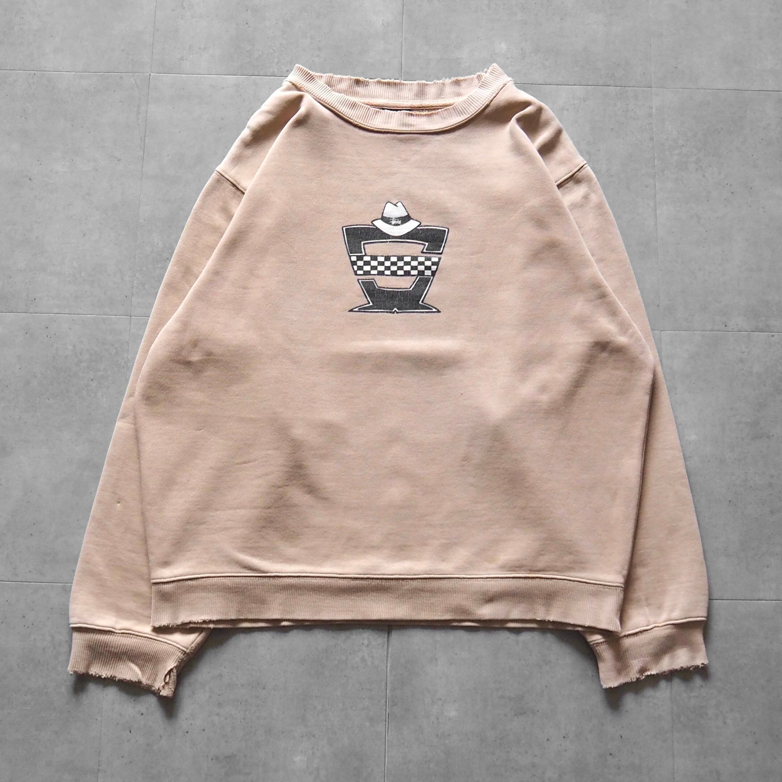 1990s "OLD STUSSY" Hat Desined Printed Sweat Navy tag ステューシー スウェット
